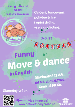 Cvičení, tancování, pohybové hry i opičí dráha – vše v angličtině.
